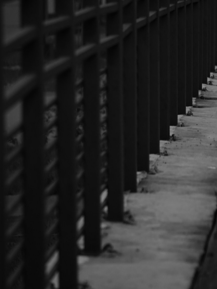 Монохромный снимок погружает в атмосферу уединённой дороги. В фокусе — строгие линии металлического ограждения, словно охраняющего границу между цивилизацией и природой. Размытый фон подчёркивает геометричность и индустриальный характер переднего плана. Игра света и тени создаёт ощущение глубины и загадочности.